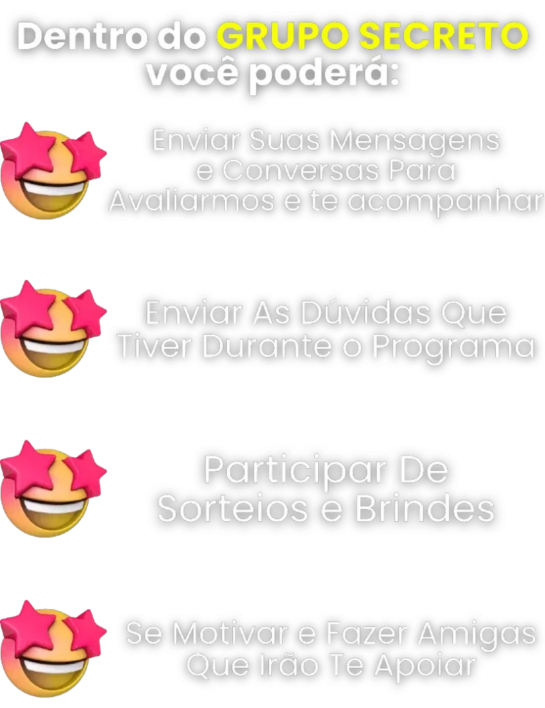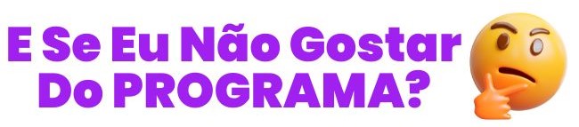 A garantia serve para você testar todo o conteúdo do programa e se por algum motivo você não ficar 100% satisfeita, basta entrar em contato com minha equipe que devolveremos seu dinheiro de forma integral.